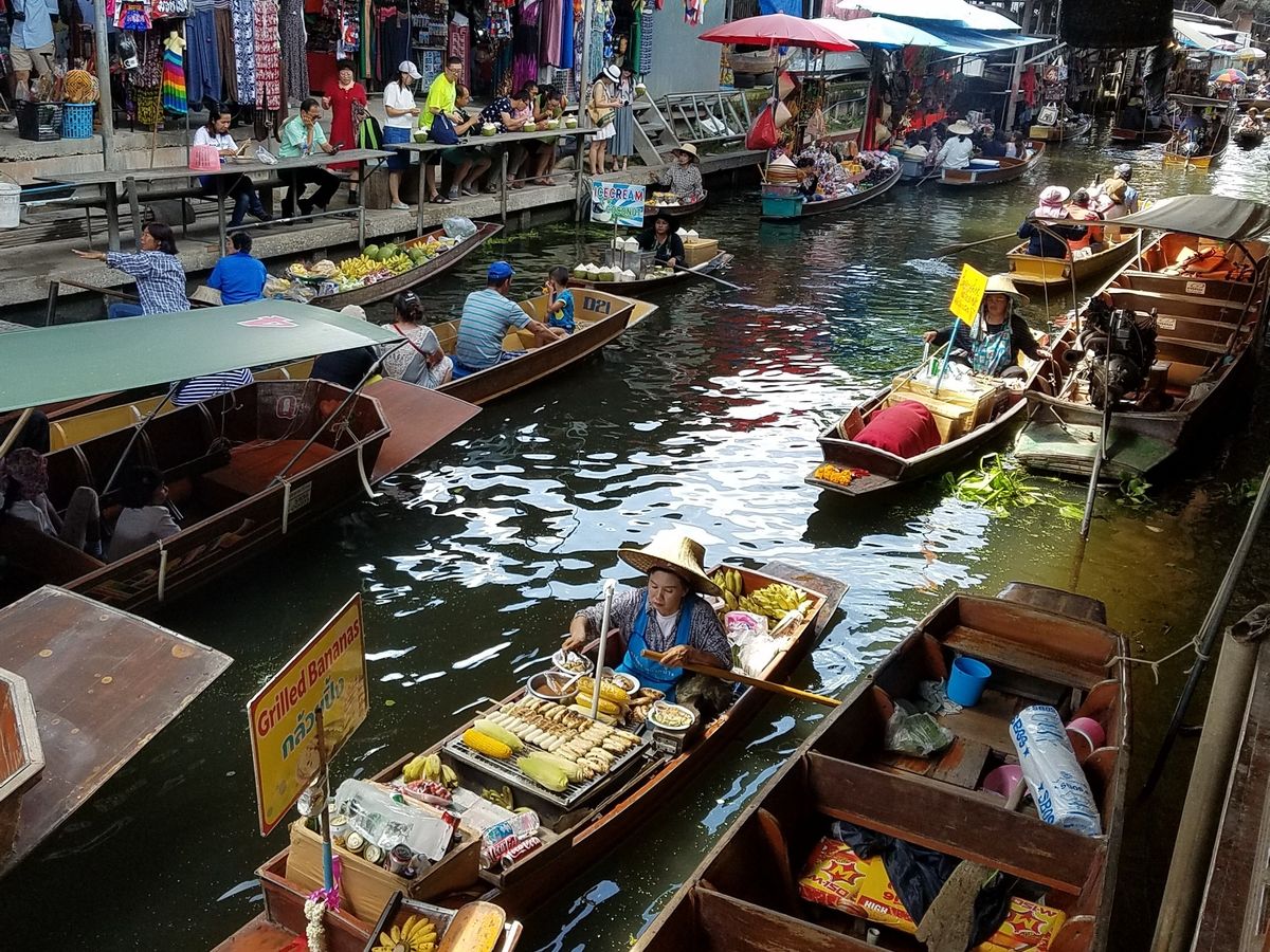 水上マーケット自体は混みすぎていて、あまり身動きとれず、押し売りが激しい。…平日に訪れるのを強くオススメする。