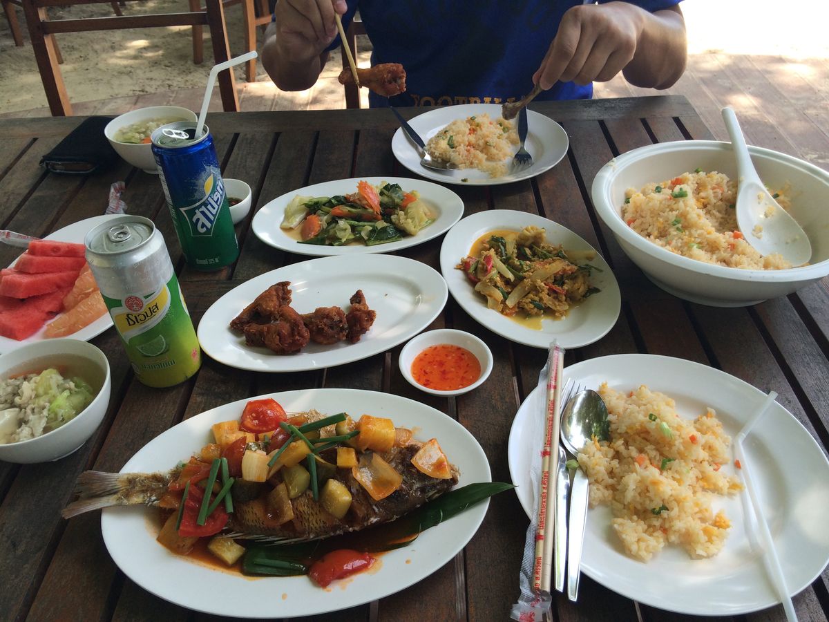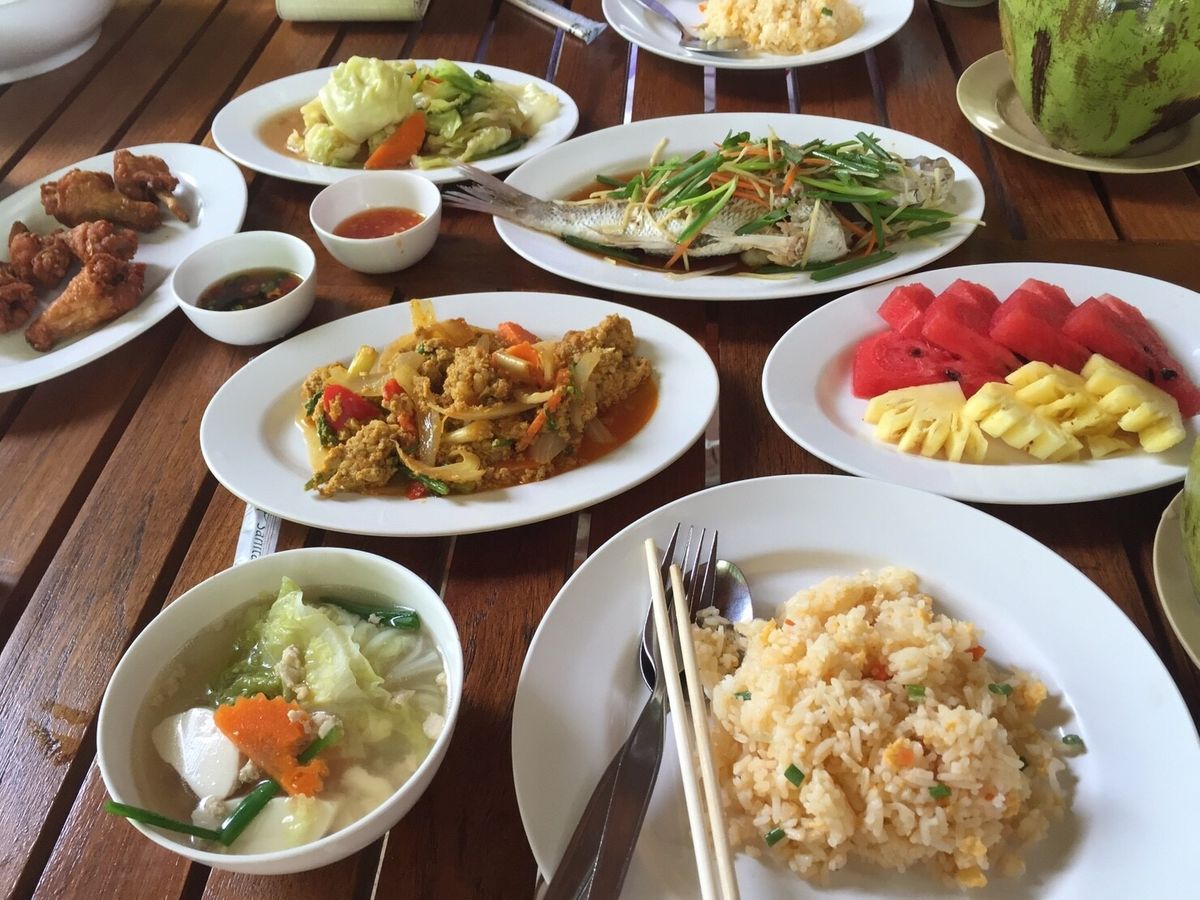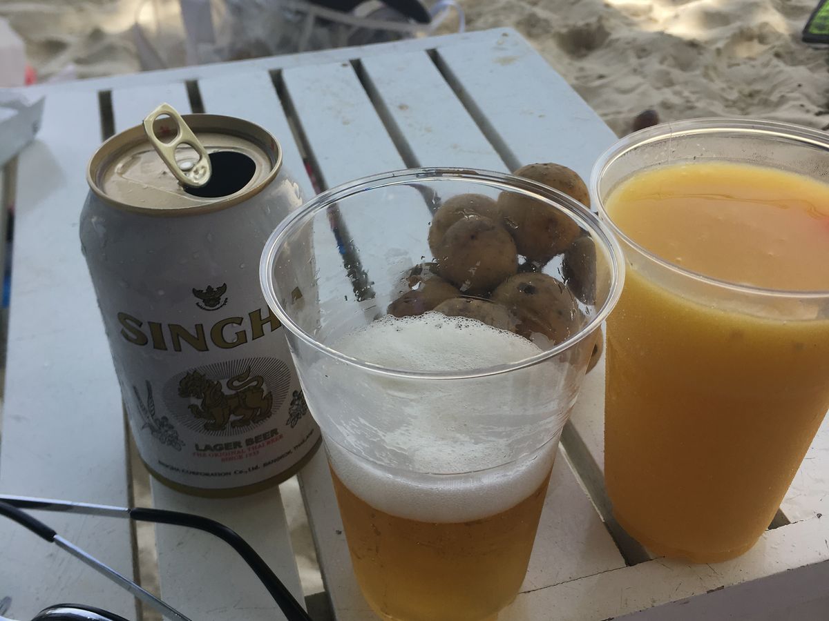 泳ぎつかれたらビールやスムージーを飲んでビーチの座椅子でだらだらしました。最高!座椅子は一人300バーツ(違うかも)と説明を受け、昼食時に頼んだ飲み物のお金を払う時に一緒に払いました。昼食も日本の味に近く、魚や野菜が豊富でとっても美味しかったです!
