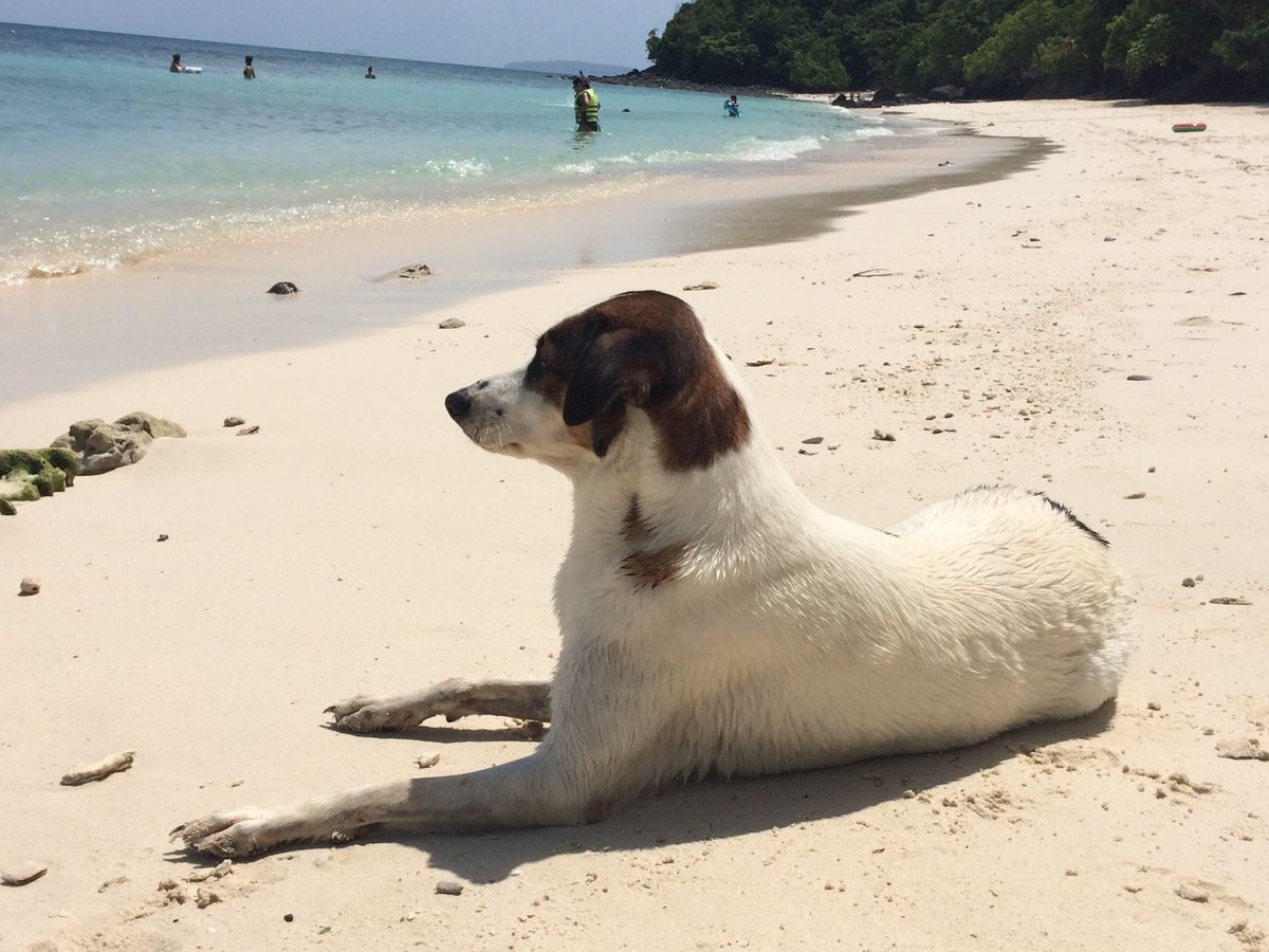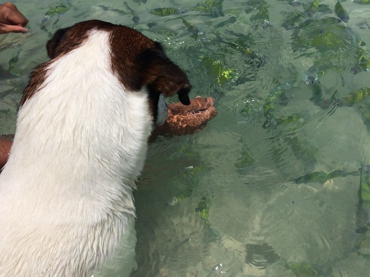 そんな熱帯魚を追いかけるペット?の犬が浅瀬で遊んでいて、とても可愛いかったです。