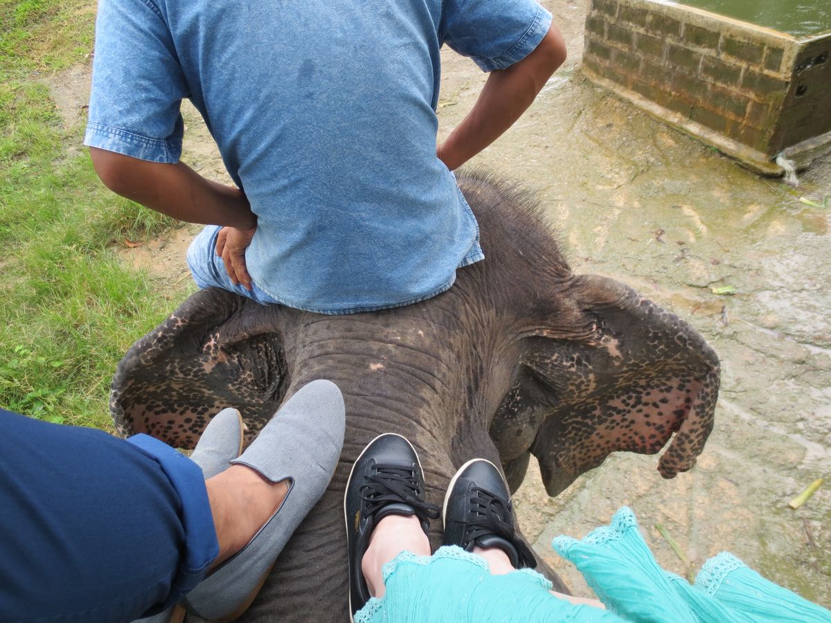 雨季でしたが、当日はかんかん照りでとってもラッキーでした!30分のコースで参加しましたが、充分だったように思います。象使いの方がとても優しくて、私たちのスマフォやカメラでいっぱい写真をとってくれました!象に乗る前に、有料のフォト撮影やエサを売りつけられました(笑)が、写真はすごく景色の良い場所で撮ってくれ、仕上がりもキレイにフレームがプリントされたものですし、エサを食べる象さんもとても可愛かったので結果オーライです!!
