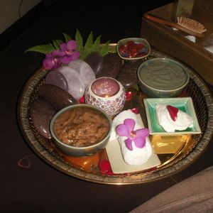 シャワーから出ると、冷たいお茶を用意してくれ少し休んでから、今度は全身をホットストーンでマッサージです。