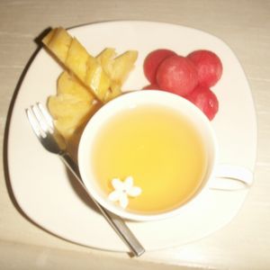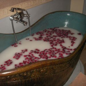 そして、最後にフラワーバスで温まり、シャワーをあびて終了です。フラワーバスの間には、冷たいお茶とフルーツを用意してくれて、お風呂につかりながらいただけます。