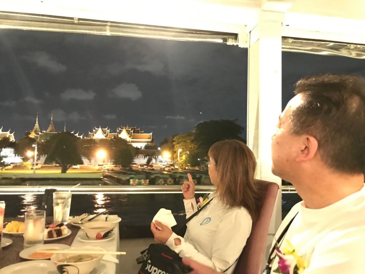 バンコクの名所、夜景のワットポーや王宮の風景を楽しめ、食事も代表的な辛いタイ料理(トムヤンクン、カレー)を味わえ、涼しい船上でのチャーン・ビールを飲めて大変良かったです。
