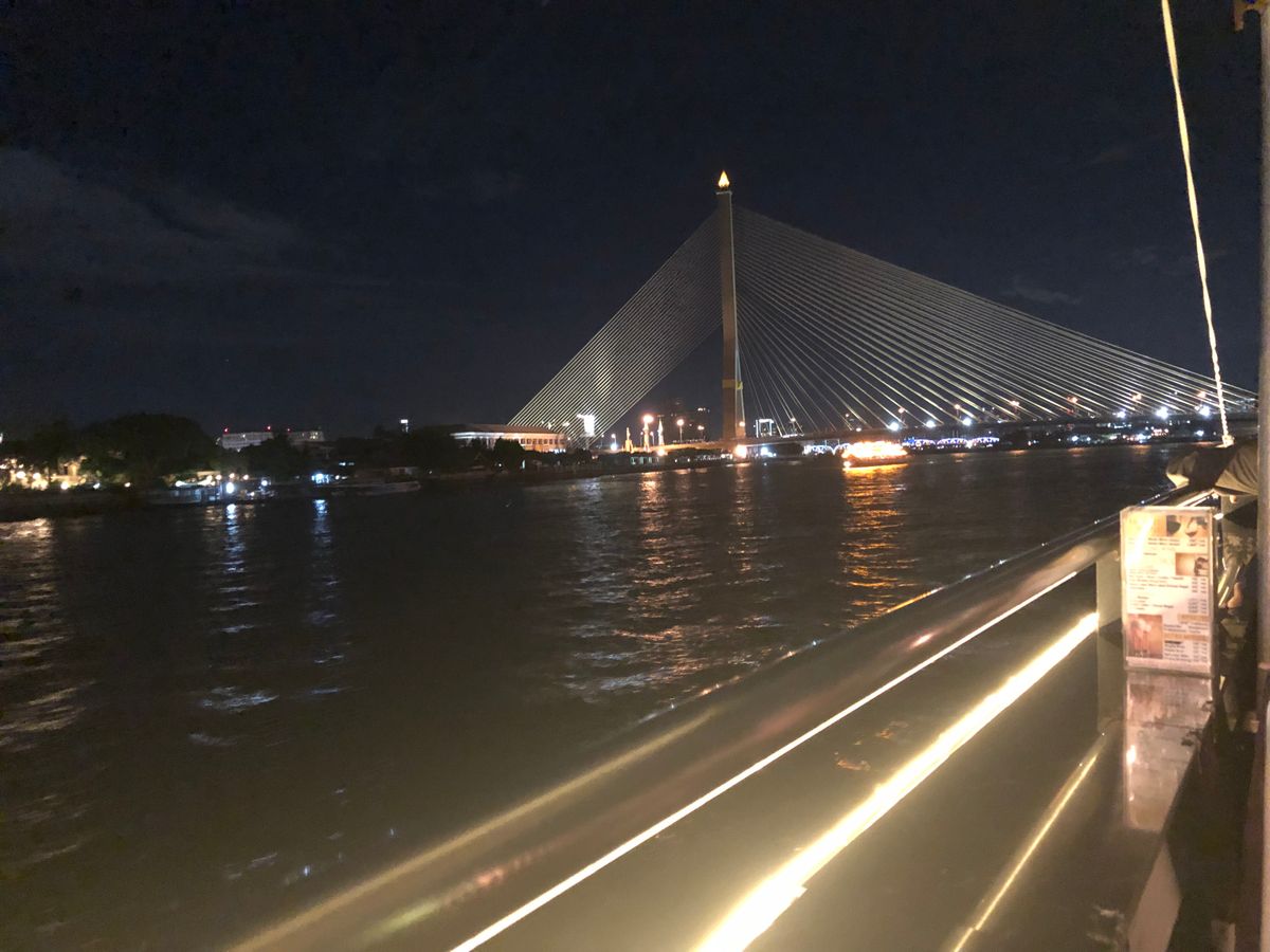 国王の戴冠式と重なっていたので催行やライトアップが心配でしたが無事催行されてよかったです。ブッフェの味はそこそこですがお腹いっぱい食べられます。お料理の関係上なのか近くのテーブルはみな日本人でした。選べるなら二階席がより景色を楽しめると思います。私は一階でしたので窓ガラスで景色を見るためにデッキへ出ました。リバーシティへのアクセスはタクシン駅からボートかタクシーしかありません。行きはボート、帰りはボートの時間が終わっていたのでトゥクトゥクに乗りました。タクシーもトゥクトゥクも高めの運賃を提示してきますので値段交渉のため何台か見送りました。