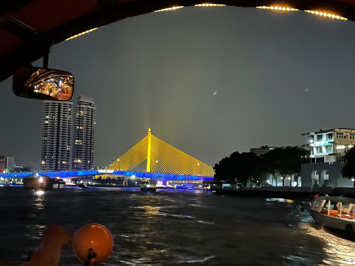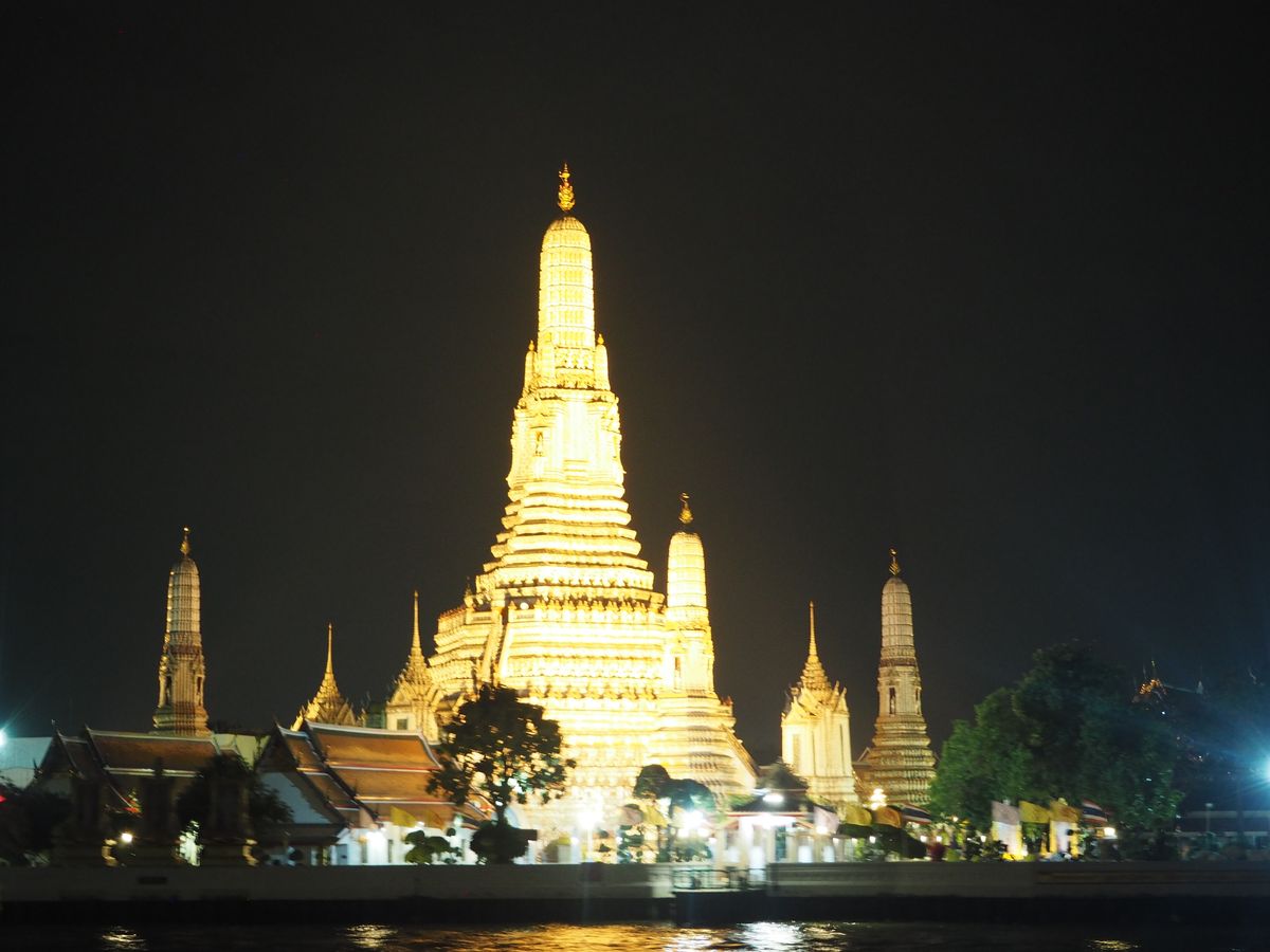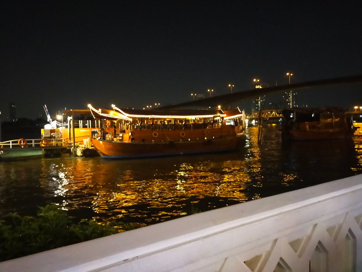 チャオプラヤ川も夜に見ると少し景色が違って見えます。ライトアップされたラマ8世橋やワットアルンなどもとてもきれいです。