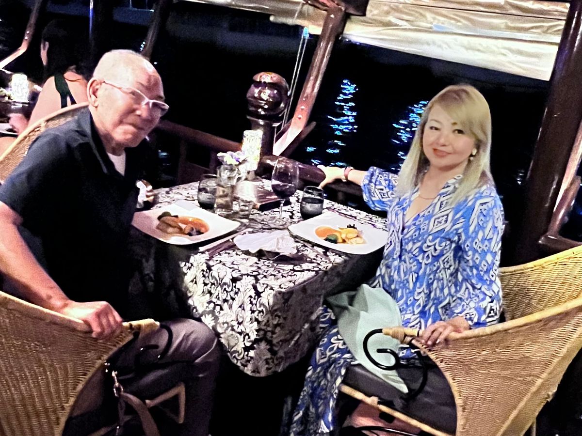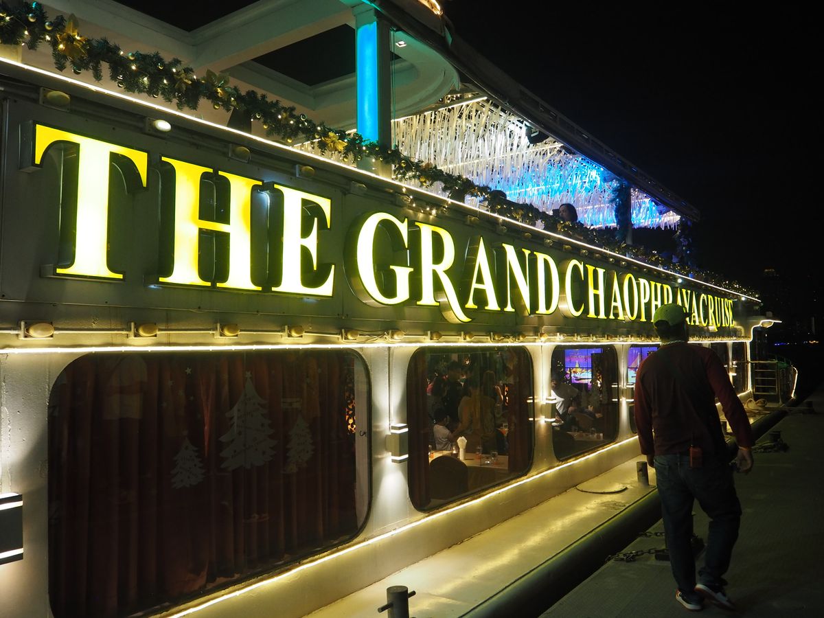 スタッフは親切でフレンドリーで、食事も美味しかった。ボートはワットルアンのずっと先まで行ってくれて、たっぷりと川沿いの景色を楽しませてくれた。川には沢山のクルーズ船がイルミネーションを輝かせていたが、ビュッフェでなくコースメニューが出て、エンタテインメントに邪魔される事なく会話を楽しめるのもこのクラシックデザインの船ならでは。そうした大人のムードをお求めの方にはお勧めです。