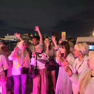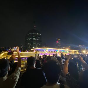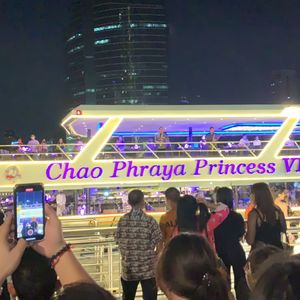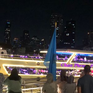 3年前に夫婦で年越しディナークルーズに参加しました。今回は友人多数でゴルフ三昧の旅行でしたが、急遽駄目もとでディナークルーズを前日に申込みましたが、コロナの影響なのか予約が取れました。当日はそんなに混んでいないと思ってましたが、大勢の人がいて圧倒されました。クルーズの食事は3年前とそんなに変わってませんでしたし、船から見る夜景も綺麗でした。雰囲気も良く是非バンコク旅行にはお薦めです。