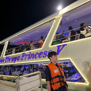 チャオプラヤ川のクルーズ船は多数出ているので、どれにするか最後まで迷いましたが、結局、一番名前を良く聞くチャオプラヤプリンセス号に乗ってみることにしました。アイコンサイアム到着後、Veltra記載の説明が親切ではないので、チケットを受け取る場所が直ぐに分かりませんでした。以前アイコンサイアムに来た時の記憶で何とか行けましたが、迷ったらインフォーメーションで聞いた方が良いと思います。船は1階は冷房が効いていて、2階はオープンスペース。申込時に多国籍料理とインド料理の選択肢がありましたが、多国籍料理を選ぶと1階席なのか自分は1階席でした。料理は思ったよりは食べれました。でも、サーモンの刺身は美味しかったけど、ローストビーフは硬くて食べられたものではなかった。食べ始めると直ぐにワットアルンが近づいて来て、写真を撮ったりと案外忙しい。ワットアルンのライトアップは初めて見ましたが、とても綺麗でした。船内は想像していたよりはゆったりしていて、デッキからの眺めは良かったです。音楽は多少は盛り上がっていましたが、思った程ではなかったです。全行程2時間というのはちょうど良い長さだと感じました。
