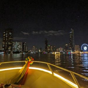 チャオプラヤー川を渡る夜風で暑くもなく、ワットアルンや王宮のライトアップがより綺麗に見えてとてもよかったです。