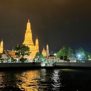 アナンタラホテルに着くのが早すぎたのですが、待合スペースでのウェルカムドリンクとおつまみのサービスがありました。辺りが暗くなり、照明が点灯する頃に出航。ライトアップされた橋や街並み、特にワット・アルンは必見です。料理も様々な趣向が凝らしてありとても美味しかったです。量が少し多めですが。スタッフの対応も親切で、最高に贅沢な時間を過ごせました。ライブ演奏をしながらバイキング形式のクルーズ船と何艘もすれ違いましたが、静かに食事と夜景を楽しみたい方には、お勧めです。マノーラ号、最高でした!