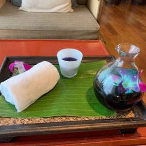 お店に着くと、冷たいおしぼりと青いハーブティーが出てきました。受付の女性が日本語でいろいろ説明してくれ、リクエストなどを聞いてくれますので、安心して施術を受けることができました。最初は4時間は長いかなぁと思っていましたが、あっという間でした。肌がすべすべになりました。