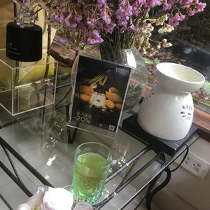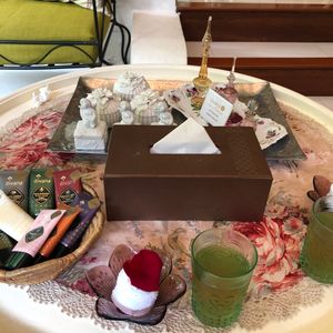 ロビーでのカウンセリングでは、3種類のオイルとスクラブを、それぞれ、実物を見せてもらいながら選ぶことができました。サンプルの入った器も、凝った香水入れのようなガラスや金属製の卵の形をした器で可愛い物でした。