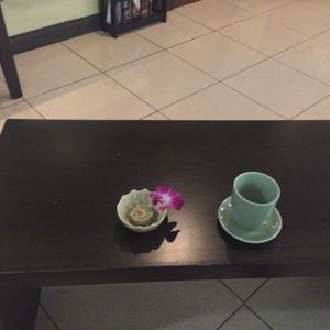 施術後、髪を乾かしているとフィニッシュ!フィニッシュ!と担当者がため息をつきながら何度も言うので、パウダールームにでも案内していただけるのかしら?と濡れた髪をまとめて部屋を出ると受付の前でお茶を出されました。