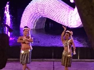 その後園内を見学して、民族芸能の踊りなどを外で楽しみ、その他少しゲームなどをしたり、買い物を楽しんでから、メインのショーを観に行きました。とても立派な劇場で、川まであったのにはみんなでびっくりしました。面白おかしくストーリー仕立てになったりして、退屈せずに観ていることが出来ました。
