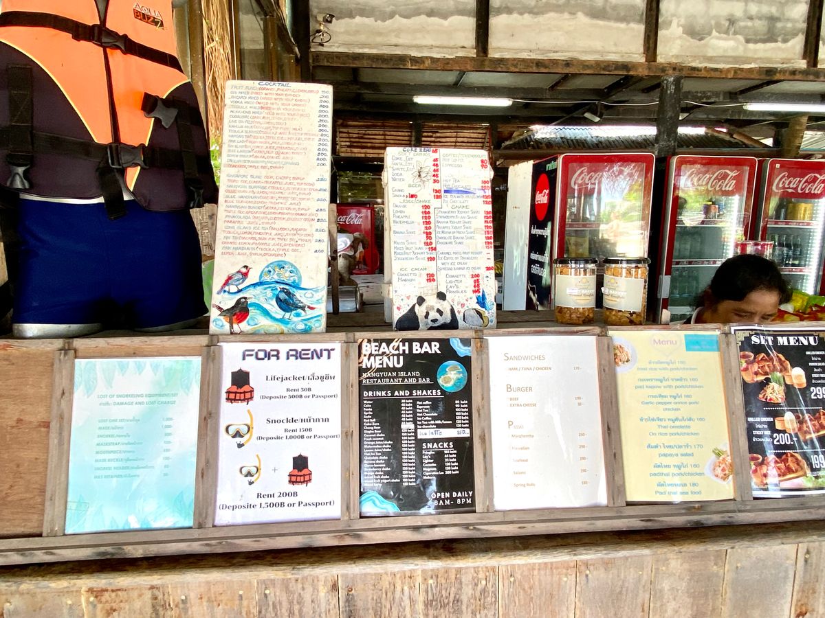 豊かな自然を守るためにナンユアン島では入島規則があり、ペットボトルや缶、スイミングフィン、マリンシューズの持ち込みや使用が禁止されています。又、ビーチパラソル1本とビーチチェアー2脚のセットは150バーツ(2019年10月現在)で借りられ、ナンユアン島のビーチスタッフへお支払いとなります。
