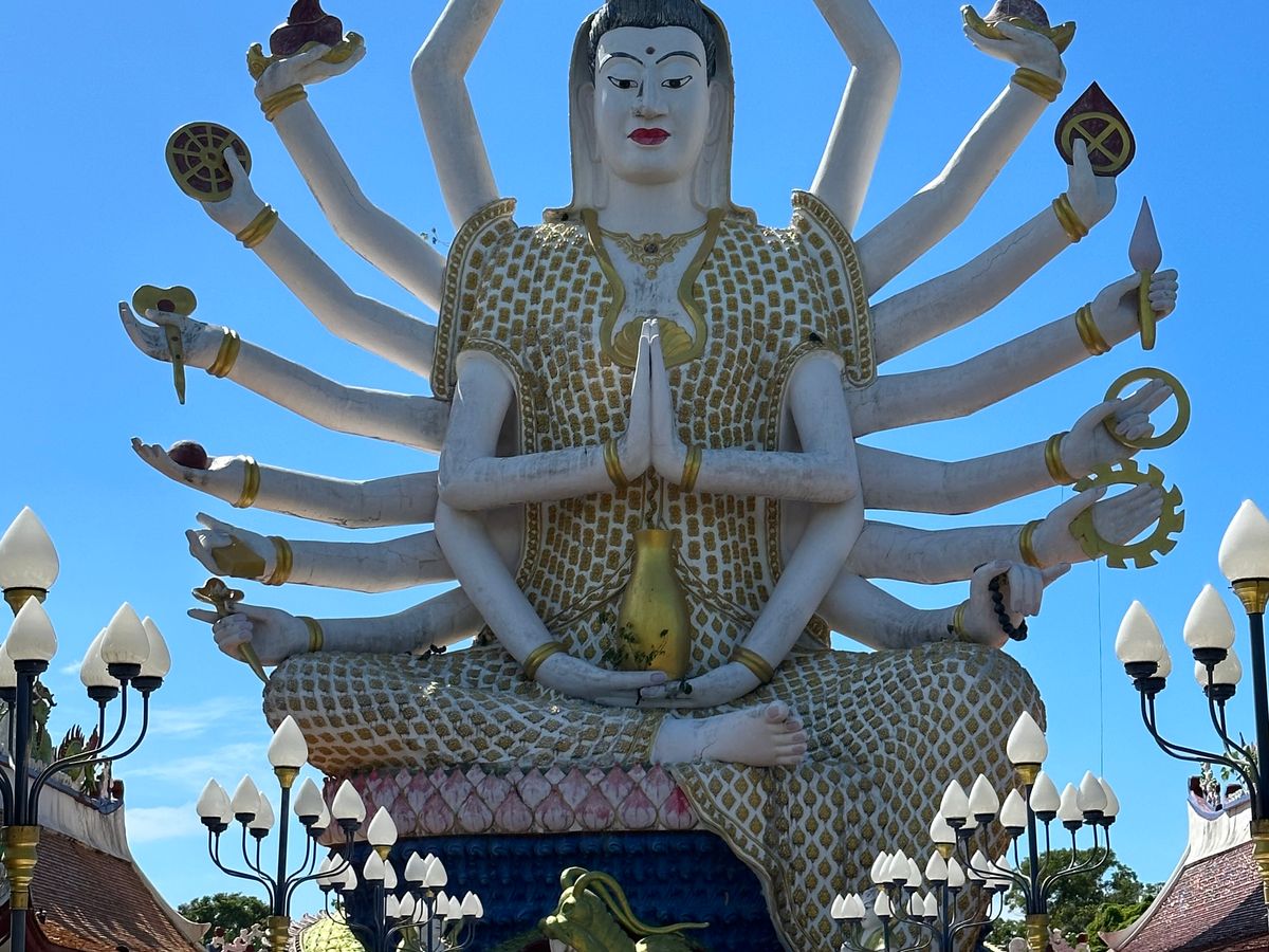 コロナ後でショーが無かったのかおじさんの岩おばさんの岩の後、サムイ島で一番古いお寺に寄り。