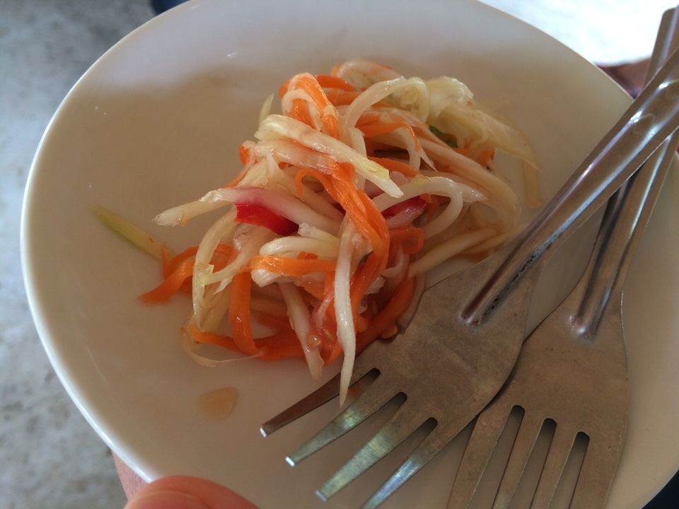 タイクッキングではパパイヤサラダを実際に作って見せてくれました。できたサラダは試食することができ、ニンニクが効いていて美味しかったです。