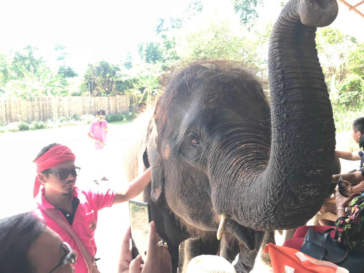 象乗りだけでなく、象や猿のショー、タイボクシング、フィッシュスパ、タイクッキングに水牛ライド、ゴムの作り方説明、ナムアンの滝2の見学に絶景ビューのレストランでランチと半日のツアーで色々と体験でき、とても満足度の高いツアーでした。