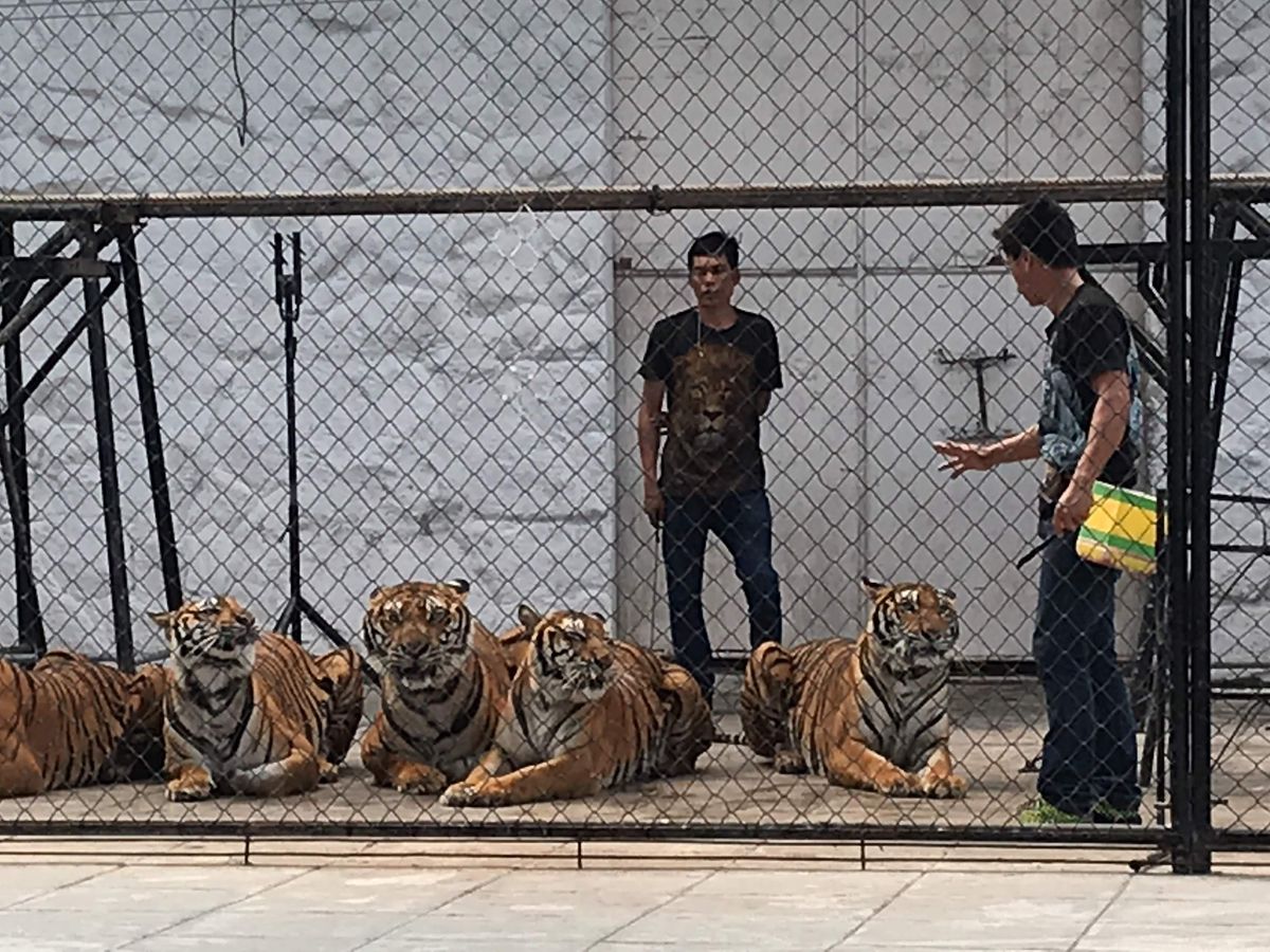 寺院を数ヶ所訪れ、その後混載車なのにタイガーショーかガンシューティングのどちらかを選ぶよう指示されまして。タイガーショーを選択したのですが、写真の値段は現地で400バーツと高かったので全員撮らないと決めると直ぐに移動。