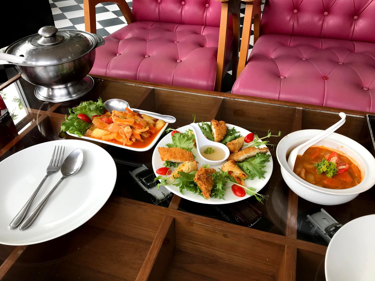 ランチは別料金とスケジュールには書いてありましたが、お金はかからず、無料で食べることができました。バイキング形式で、質素な感じですが、グリーンカレーとトムヤンクンもあり、味も普通に美味しかったです。