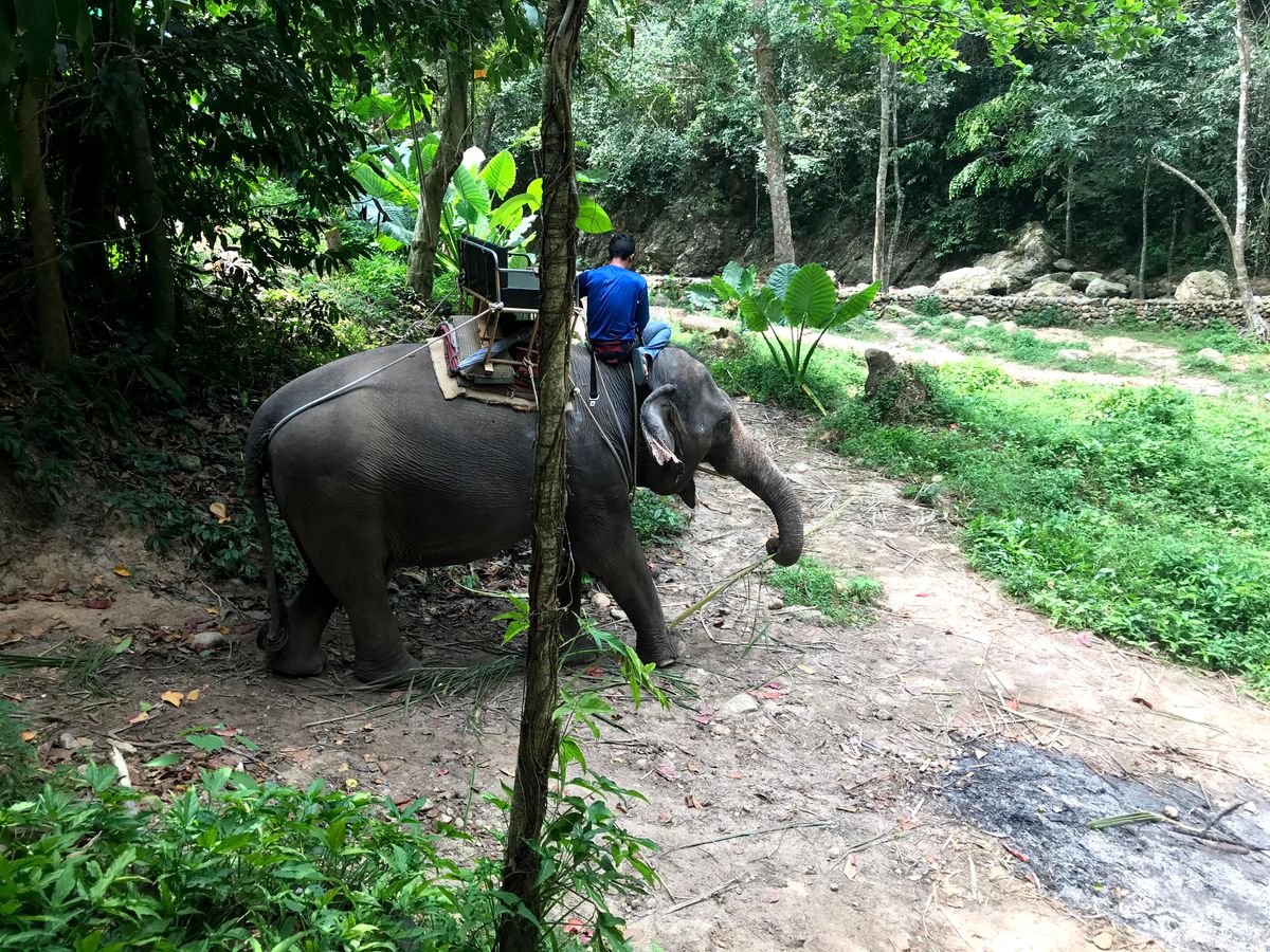 象には初めて乗りました。歩くたびにかなり揺れて最初はびっくりしましたが、慣れてくるとその揺れが心地よくなりました。ゾウ使いの方が、草でネックレスを作ってくれたり、本当は写真撮影禁止なのにこっそり写真を撮ってくれたりします。(ただし、写真を撮ったらチップをくれと言われます。100バーツ渡しました。)