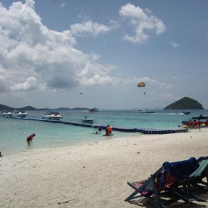 当日は8時にホテルにガイドさんが迎えにきてくれました。約束の20分前にはロビーで、待っていてくれたようです。途中でもう一組を乗せて、鮒乗り場まで行きました。コーラル島まではスピードボートで15分くらい。ライフジャケットを着て乗りました。乗るときに海に足を少しつけるので、ビーサンをはいていってよかったです。スピードボートは、揺れてアトラクションに乗ってるみたいでした(笑)その時点で楽しかったです。私たちはバナナビーチに行きました。ビーチに着くとらまずは80バーツで場所を借りました。少したつと、アクティビティの説明をしに日本人の方がやってきました。アクティビティは別途料金がかります。私たちは、一人2000バーツで体験ダイビングをやることにしました。初めての経験で緊張したのですが、これが最高の経験でした。間近で見たクマノミはとっても可愛いかったです。そのあと少し泳いで豪華な昼食を食べました。普通に美味しかったです。そして、残りの時間は150バーツでシュノーケルを借りて泳ぎました。島にはトイレもシャワーもあってよかったです。帰りもスピードボートで、ホテルには15時くらいに着きました。とても素晴らしい1日でした。何よりもガイドのピンさんがとってもいい人で、気持ちよくコーラル島を満喫できました。オススメのツアーです!