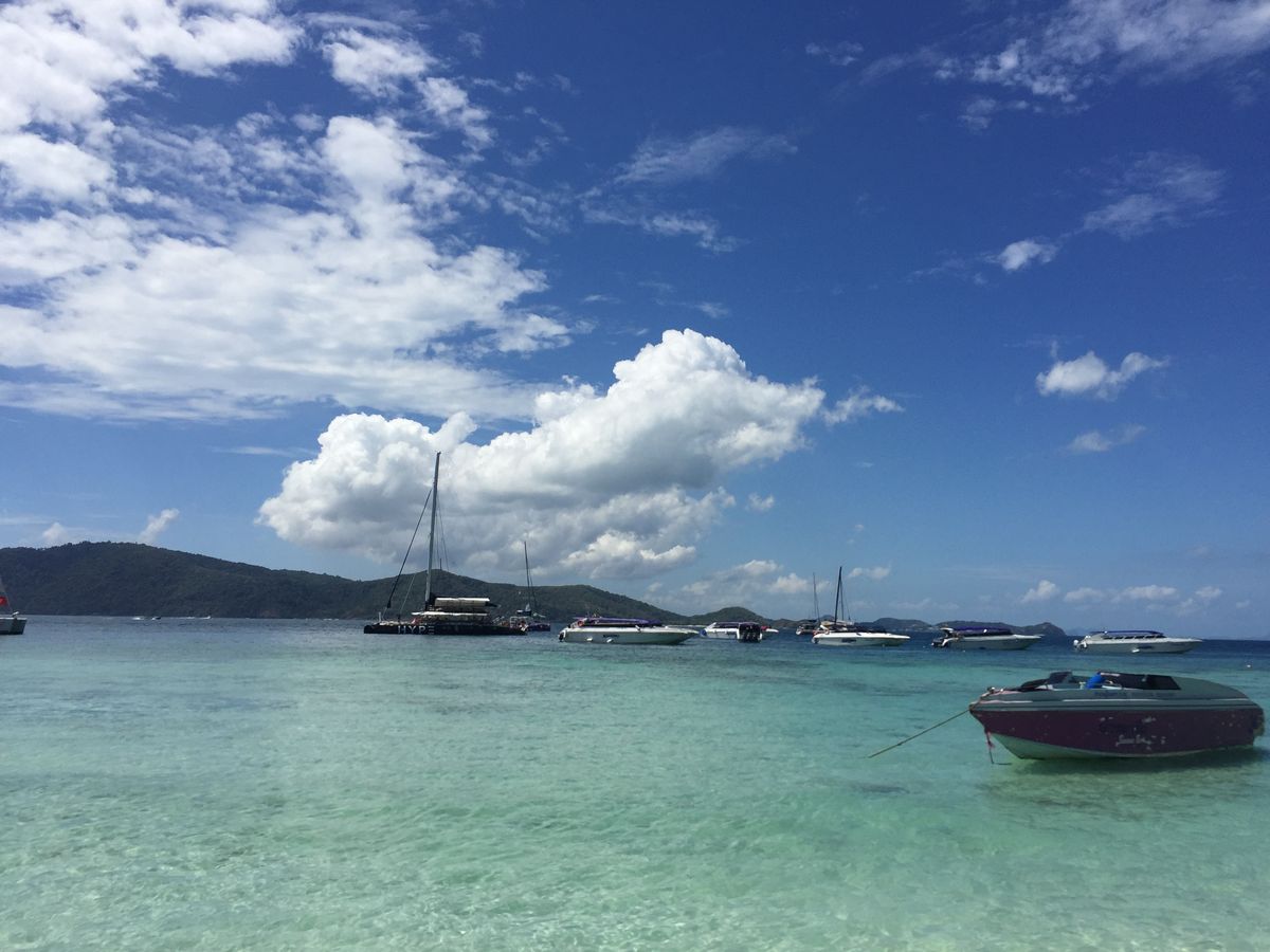 予定を変更してまずはラチャヤイ島へ。港から30分かかります。島について30分ほど休憩してまた船に乗りシュノーケルポイントに行きました。水はとても綺麗で深い場所でしたが、残念ながら思ったより魚がいませんでした。波もあって泳ぎにくく、そのせいか30分ほどのシュノーケルで早々に船でラチャヤイ島に戻ることに。