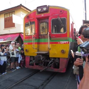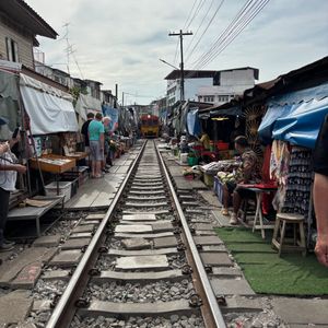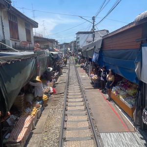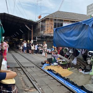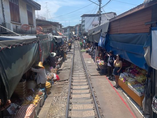メークロン市場は早めに着いたため市場をじっくりと見て回ることができました。電車が通過するさいには間近で見れたのがすごく良かったです。