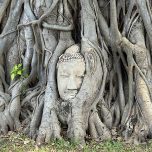 13:15から北のアユタヤへ。4大寺院を見て、像に乗る。像はオプション200バーツで池の中も歩く。面白い。