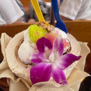 水上マーケットではココナッツアイス(60バーツ)を是非食べてください!