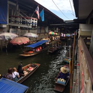 水上マーケットは、最初何もない水路だったのですが走ってるだけでもエンジン付きボートで面白かったです。別途料金を払って手漕ぎボートに乗らないと水上でのマーケットは楽しめませんが、陸からでも一応買えました。