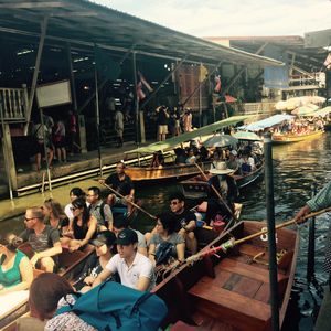 ココナッツファームの見学から、水上マーケットに移動して、モーターボートと手漕ぎボートでショッピング気分です。