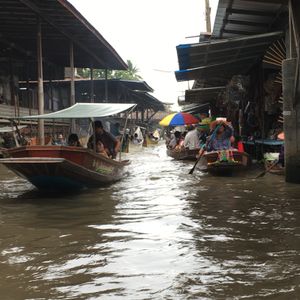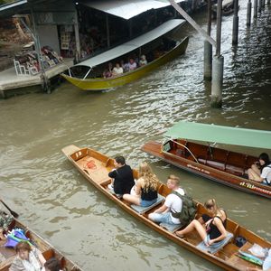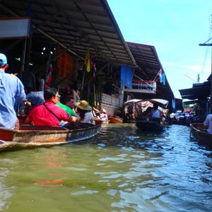 水上マーケットは、エンジンボートは楽しかったのですが、そのあと別料金の手漕ぎボートは、地元の方が食料ボートから買い物するのを見るのではなく、観光客が乗るボートが両岸の土産屋を順に回るものでした。日常の風景が見られると思っていたので、観光客向けになっていてがっかりでした。また私たちのボートは5人乗っていたのですがビールしか買わなかったからなのか、あっけなく「終わり」と言われて降ろされてしまい、30分くらい時間が余ってしまいました。エンジンボートに乗っていた時に手漕ぎボートをたくさん見かけたのですが、そこまで行っておらず、本来のルートを大幅カットされたように感じました。