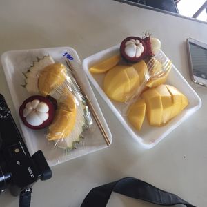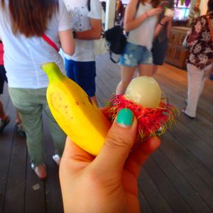 水上マーケットでも並ぶことなくすんなり手漕ぎボートに乗れて、降りたところでガイドさんがフルーツをサービスしてくれました!