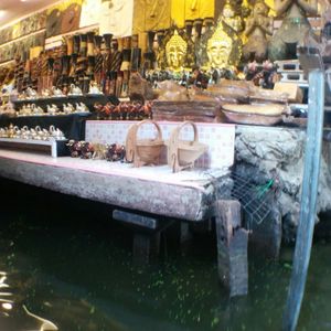 水上マーケットは実際に地元の方の生活のためのマーケットというよりは観光客用のためか、売っているものはお土産品ばかりでしたが、雰囲気は楽しめました。水路が狭いため、マーケット内の水路は移動の船でごった返していました。