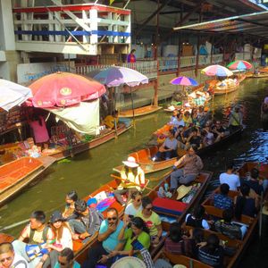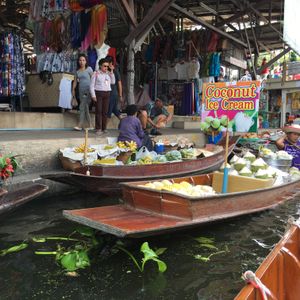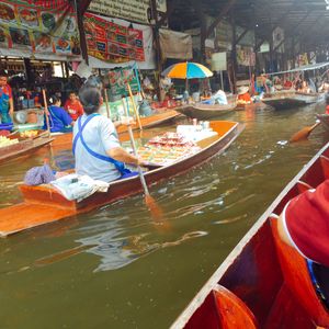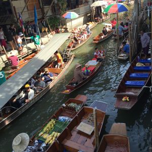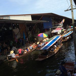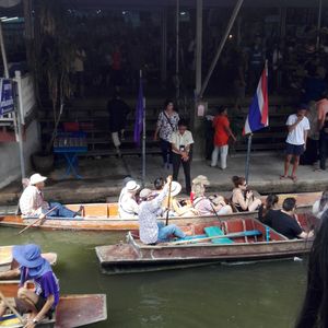 ガイドさんが、とても詳しくタイの歴史などを道中で説明してくれて、水上マーケットでは一人200バーツでボートに乗り、日曜日のせいかボートが離合できないぐらいとても込んでいました。