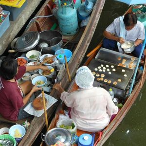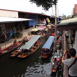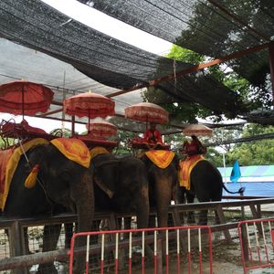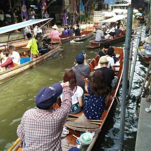 7時10分にホテルまで来てもらい約1時間かけ水上マーケットへ!道はガタガタしているので寝れるけど起きやすいです(笑)水上マーケットにつくとモーターボートへ乗ります。スピードが早く顔に水が飛ぶほどでアトラクションみたいで楽しかったです(笑)次に200B払うと買い物もできる水上ボートへ乗ることができここでしか体験できないので約日本円で600円なので乗り、買い物してきました!貴重な経験が出来たと思います。それが終わるとまた1時間かけホテルのビュッフェで昼ご飯です。様々な料理がありますが独特な味が全般的だと感じました。食事が終わるとアユタヤ遺跡を4箇所ほど周り最後に象乗りを行います。アユタヤにいる時間は割と短いので買い物は出来ません。象乗りのところへ行くと虎とも写真を撮ることができ日本ではなかなか体験できないのでこちらも200B払ういますがオススメです!このツアーを頼めばタイの有名どころほぼほぼ行けるのでとてもおすすめで非常に楽しめました!