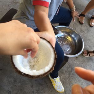 ココナッツファームでは、ココナッツから採る砂糖の不思議な味を体験し、自由時間にはココナツジュースで喉の渇きをいやしました。(40B)