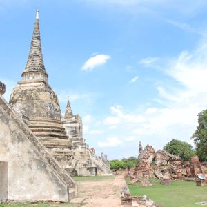 ガイドさんの遺跡の説明もわかりやすく、タイの歴史を知ることができてより充実した時間でした。また、移動時間も1時間半〜2時間と寝ていればすぐに目的地にたどり着けたので、自分たちで行くのもミッション感があり楽しいですが、その分時間と体力を使うことを考えれば、短い時間を有意義に使えたのでツアーを利用してよかったです。また参加者とも仲良くなり、訪れた先の話がきけたこともよかった点です。アユタヤの遺跡をまわる際、とても暑いので随時ずいぶん補給は必須です。水上マーケット では、写真で見るような場所に行くためには、プラスαで200B払って手漕ぎぶねに乗る必要がありますが、乗った方が絶対に楽しいです。水上マーケットに行くための水上バイクに乗るのですが、その際途中で写真を撮ってくれるおじさんがいます。その写真がのちのちかわいい写真たて付きで150Bで売っているので、結構思い出になると思います。私が泊まったホテルは、バンコクセンターホテルでそこまで送ってくれたので楽チンでした。