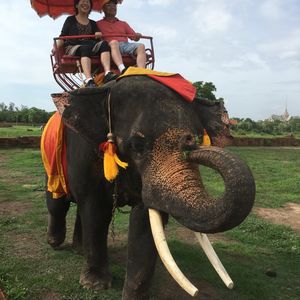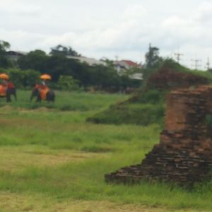 アユタヤでの象乗りは、遺跡のすぐそばで乗っているものをイメージしていたのですが、実際は少し離れた象乗り専用の場所(?)でした。象に乗って、すぐ隣の遺跡(?)の周りの草むらのようなところをのんびり歩いて、元の乗り場に帰ってくる感じで、乗っている間に大した景色は望めませんし、水に入ったり、ワイルドなところを行くのを期待している方には向きません。