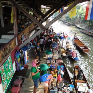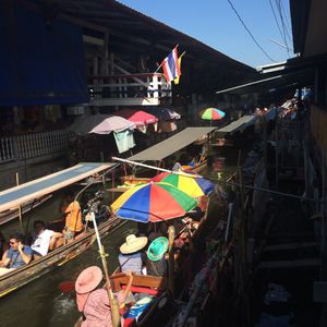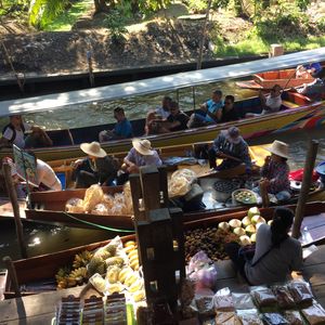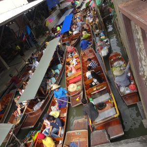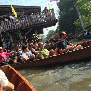 朝早くからのツアー 活気あふれる水上マーケット(船が渋滞)オプション200Bではあるが、水上マーケットの手漕きボートは乗ったほうが良いと思う。 アユタヤ遺跡も十分に廻れ、初めての象乗りも楽しかった。 バンコク市内の渋滞中、運転手さんには悪いがゆっくり寝させても、もらった。
