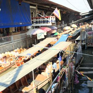 水上マーケットなどの様々なマーケットが有名なタイですが、その中でも特に独特なのがメークロン線路市場です。国鉄メークロン駅前の線路の上までせり出した市場は、列車が来る度にテント屋根をたたみ、列車が通過するとすぐに元に戻して商売を再開するなんともユニークな市場で、その様子から折り畳み(傘畳み)市場とよばれています。観光名所としても人気で、電車が通過する時間はたくさんの観光客が訪れます。線路の上に商品が置かれた光景は驚きです!アンパワーやダムヌンサドゥアック水上マーケットと一緒にバンコクから行けるマーケットの魅力をおすすめのツアーでご体感ください。