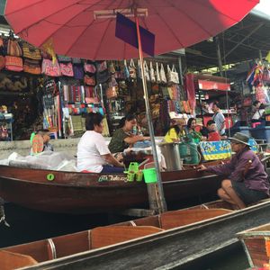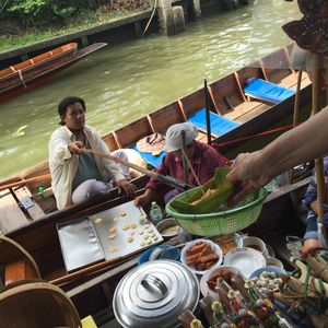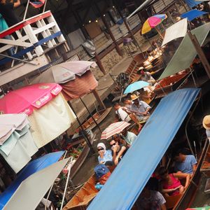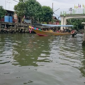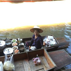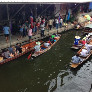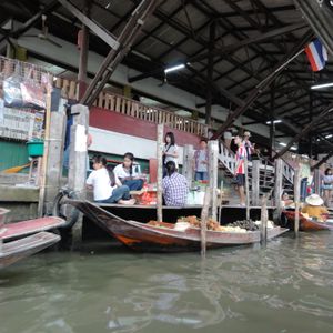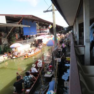 市内観光やアユタヤ観光は定番ですが、このダムヌンサドアク水上マーケットも申し込みをして大正解でした。バンコク市内から100km離れたところまで行かなければなりませんが、エンジン付きボートで狭い迷路のような運河を駆け抜け、水上生活の風情やマーケットの活気が感じられ、実に楽しかったです。マーケットでの買い物は全て値段交渉で、最初の提示値段からすぐに半値となり、そこからどれだけ下げられるか交渉する楽しさもあります。昼食はバンコクセンターホテルのビュッフェ料理でしたが、熱々のせいろ蒸し点心料理が何種類かありとても美味でした。午後の市内ツアーは私達2人だけにガイドが付いてくださり、写真撮影等たくさんしていただきました。暑い中でしたが、いろいろと配慮していただき、とても良かったです。午前、午後とも、サービスとのことでミネラルウォーターをいただいたのも良かったです。皆様に自信を持ってお勧めできるツアーでした。