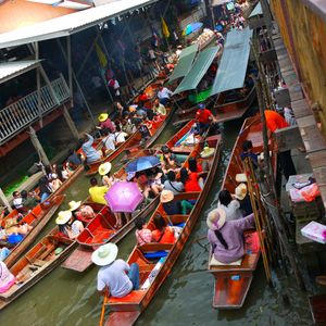 水上マーケットなどの様々なマーケットが有名なタイですが、その中でも特に独特なのがメークロン線路市場です。国鉄メークロン駅前の線路の上までせり出した市場は、列車が来る度にテント屋根をたたみ、列車が通過するとすぐに元に戻して商売を再開するなんともユニークな市場で、その様子から折り畳み(傘畳み)市場とよばれています。観光名所としても人気で、電車が通過する時間はたくさんの観光客が訪れます。線路の上に商品が置かれた光景は驚きです!アンパワーやダムヌンサドゥアック水上マーケットと一緒にバンコクから行けるマーケットの魅力をおすすめのツアーでご体感ください。