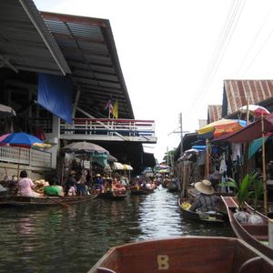 水上マーケットではプラスして手こぎボートで、お買いものした方が面白いと思います。 一緒に行った主人はおつりを10バーツですがもらい損ねていました。現地のお店屋さんでは、おつりをきちんと貰ってください(笑)