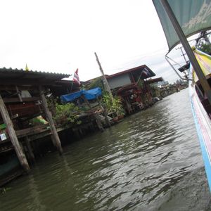 水上マーケットは15分くらい小さなボートに乗って行きました。途中に見える川岸の村?の様子も興味深いものでした。小さな社もあちこちにあり信仰深さを感じました。