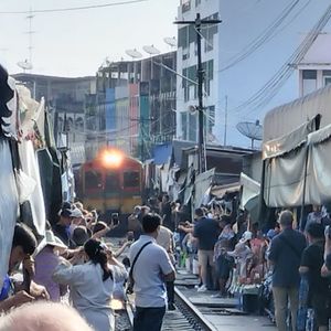 水上マーケットなどの様々なマーケットが有名なタイですが、その中でも特に独特なのがメークロン線路市場です。国鉄メークロン駅前の線路の上までせり出した市場は、列車が来る度にテント屋根をたたみ、列車が通過するとすぐに元に戻して商売を再開するなんともユニークな市場で、その様子から折り畳み(傘畳み)市場とよばれています。観光名所としても人気で、電車が通過する時間はたくさんの観光客が訪れます。線路の上に商品が置かれた光景は驚きです!アンパワーやダムヌンサドゥアック水上マーケットと一緒にバンコクから行けるマーケットの魅力をおすすめのツアーでご体感ください。