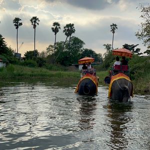 早朝から夜まで1日かけて水上マーケット、メークロン市場(テントを畳んで電車が通り過ぎるのを見学できます)、象乗り体験、アユタヤ遺跡をまわり、とても盛りだくさんのツアーで楽しめました。