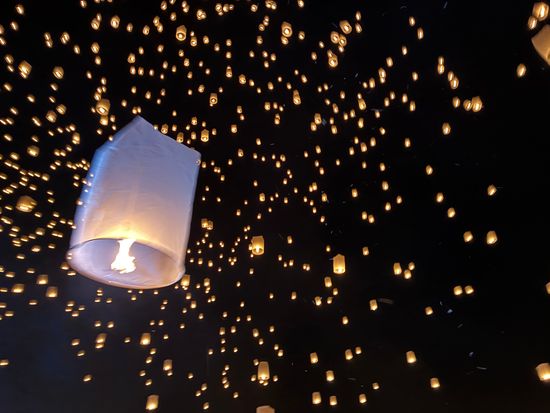 いつかは行きたかった 念願のコムローイ祭りでした。当日は 風もなく 綺麗にコムローイを上げることができて 感激でした🥹