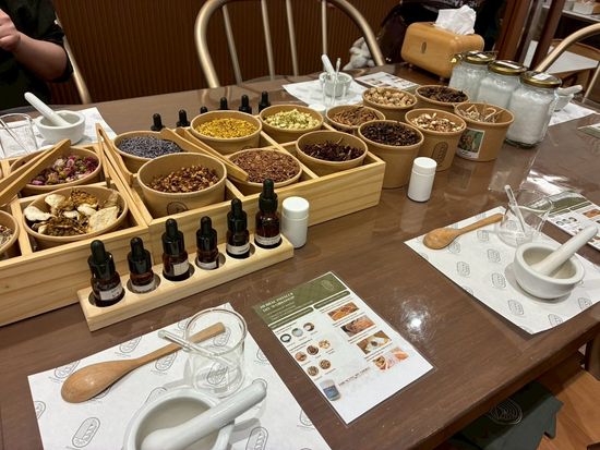 体験の始まりにハーバルドリンクのサービスがあり、心身ともに落ち着いた状態で参加できました。施設全体はレトロで統一感があり、静かでとても雰囲気が良いです。